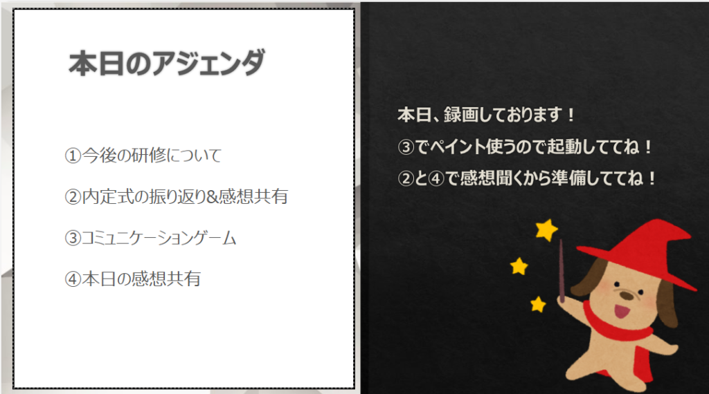 今回の研修は、内定者の皆さんに「入社までの期間も孤独を感じさせない」「今後の研修も楽しんで参加してほしい」というメッセージを伝えることでした。